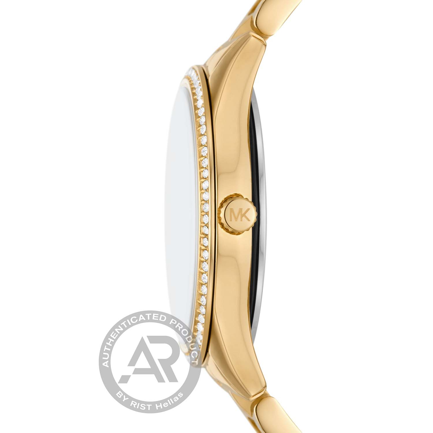 Γυναικείο ρολόι Michael Kors από ανοξείδωτο ατσάλι με πράσινο καντράν, πέτρες ζιργκόν και μπρασελέ.
